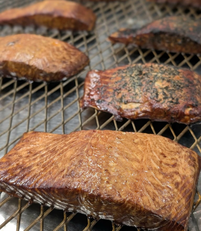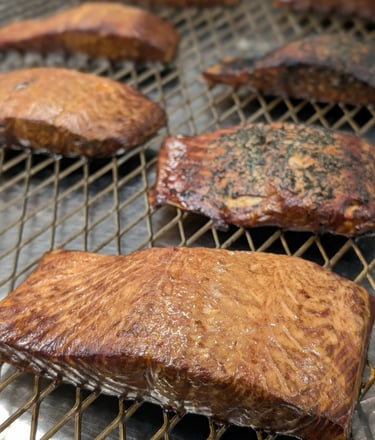 Goûtez la différence de l'artisanat : nos produits fumés à chaud sont faits maison, et fumés aux copeaux de bois dans notre propre fumoir traditionnel, pour des saveurs authentiques.